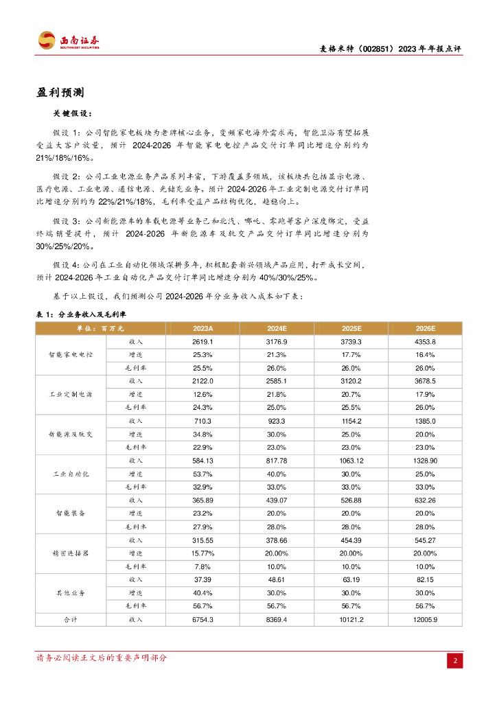 西南证券:麦格米特(002851)-2023年年报点评:业绩符合预期,多元发展驱动增长.pdf