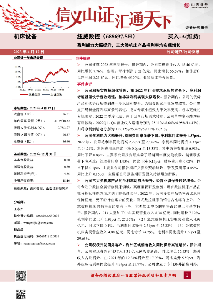 山西证券:纽威数控(688697)-盈利能力大幅提升,三大类机床产品毛利率均实现增长.pdf