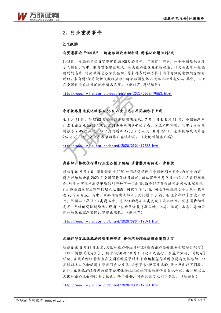 万联证券:休闲服务行业周观点报告:海南旅游人次环比增长超60%,旅游业十四五规划正编制.pdf