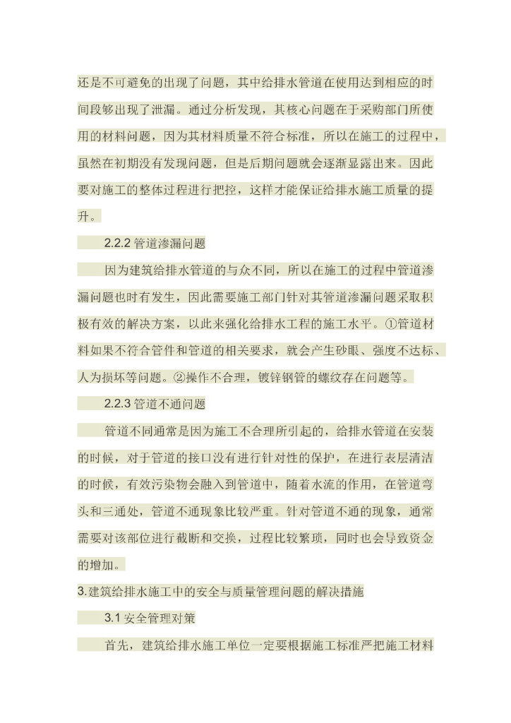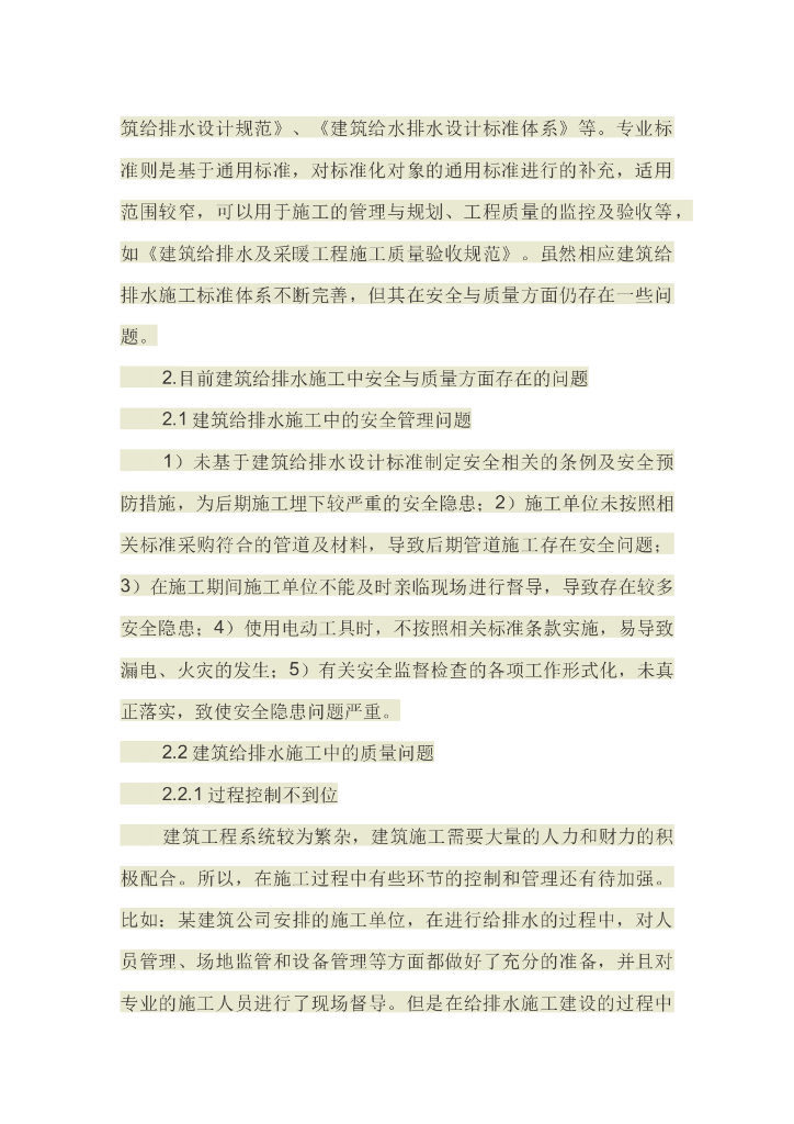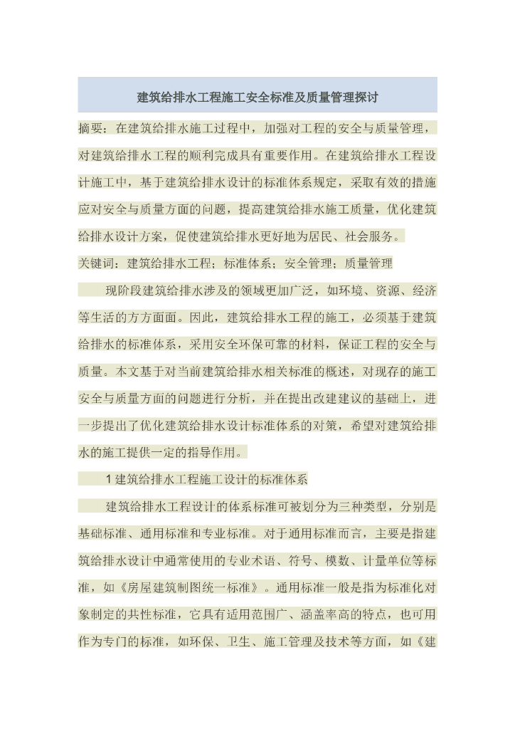 建筑给排水工程施工安全标准及质量管理探讨.doc