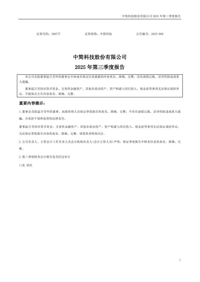300777-中简科技:2025年三季度报告.pdf