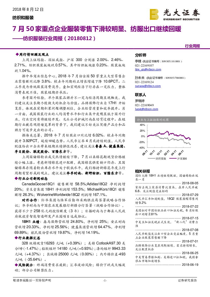 光大证券:纺织服装行业周报:7月50家重点企业服装零售下滑较明显、纺服出口继续回暖.pdf