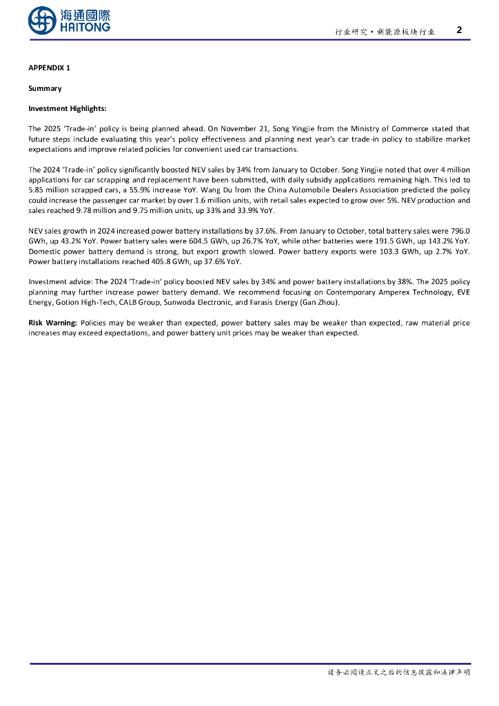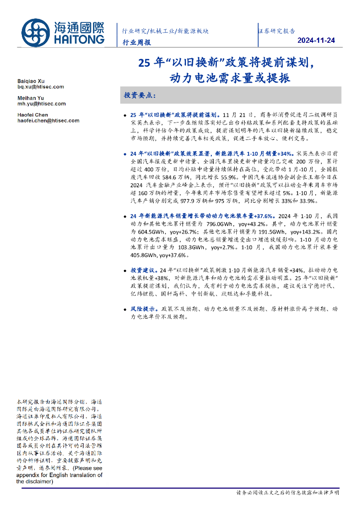 海通国际:新能源板块行业周报:25年“以旧换新”政策将提前谋划,动力电池需求量或提振.pdf