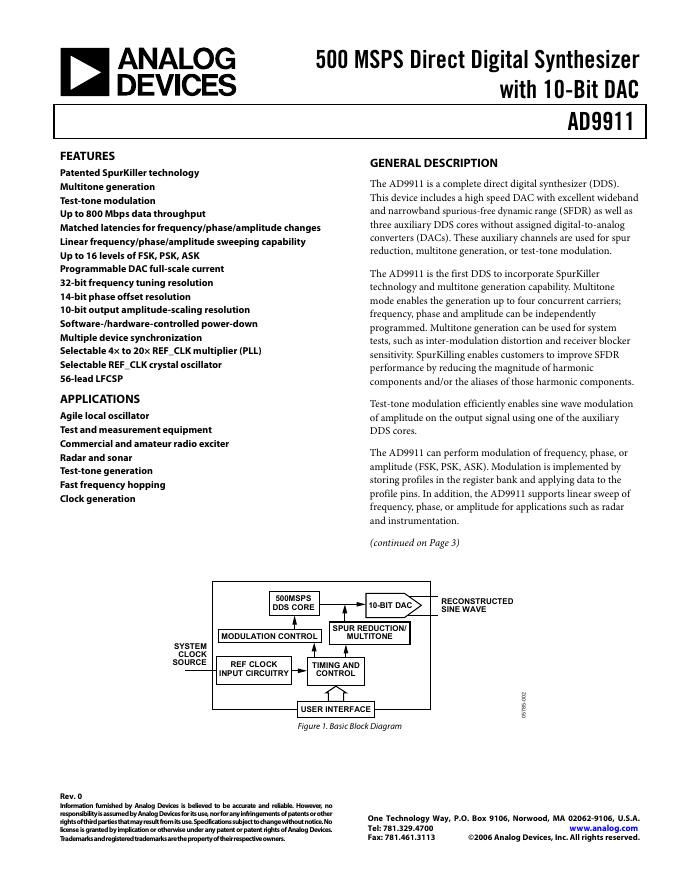 ANALOG DEVICES AD9911 英文产品 数据手册 Rev 0.pdf