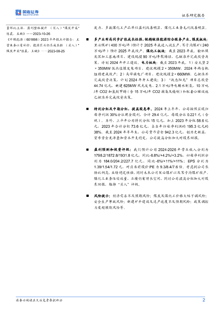 国海证券:中煤能源(601898)-2024年半年报点评:业绩优异、分红提升,低估的动力煤龙头公司.pdf