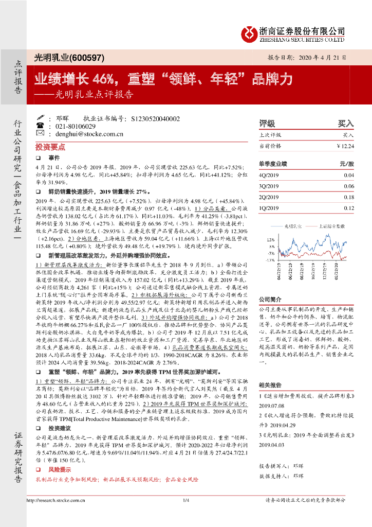 浙商证券:光明乳业点评报告:业绩增长46%,重塑“领鲜、年轻”品牌力.pdf