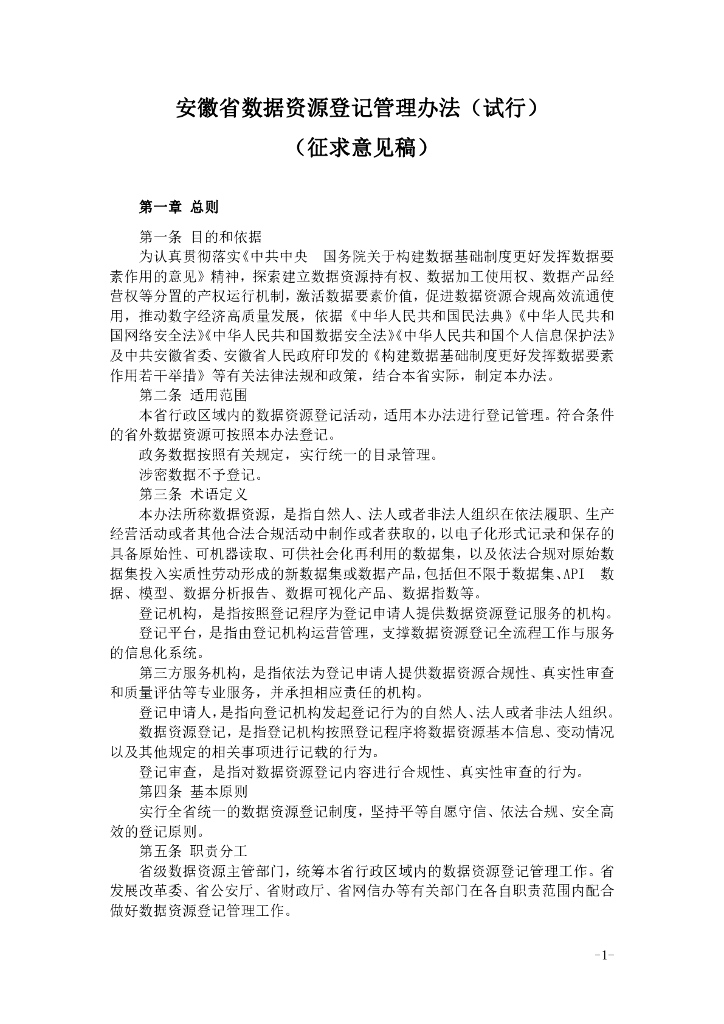 安徽省数据资源登记管理办法(试行)(征求意见稿).pdf