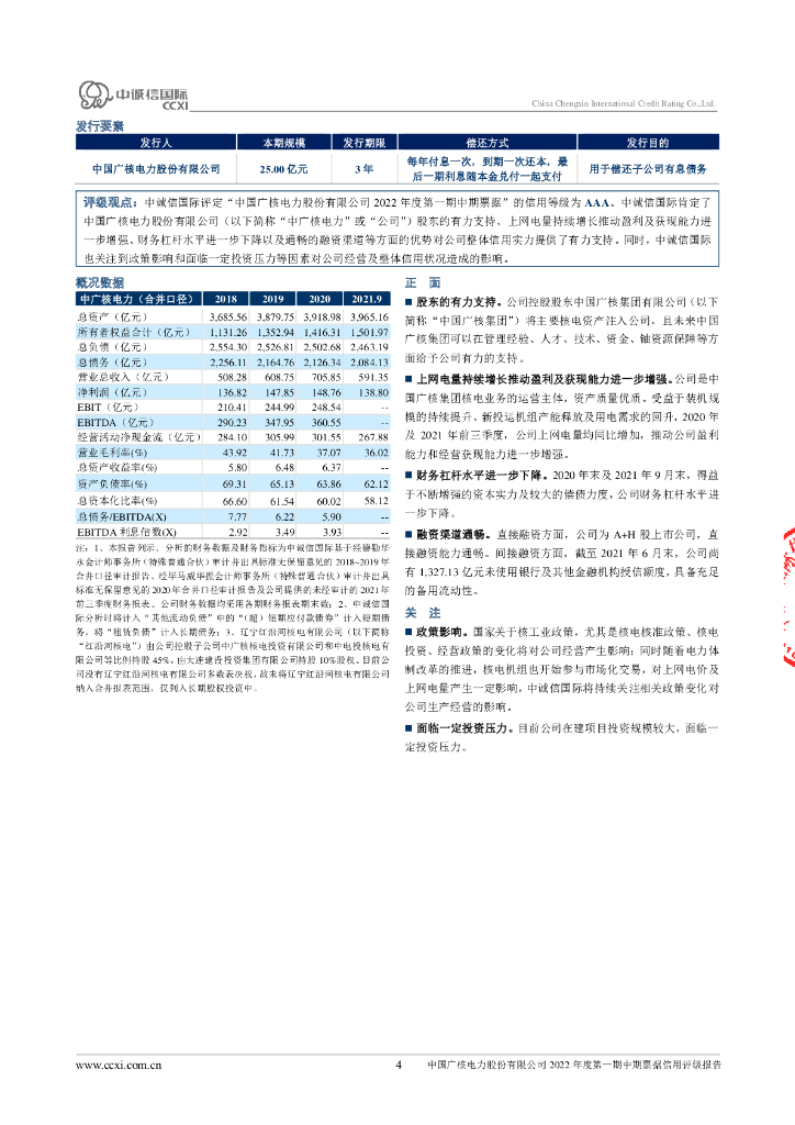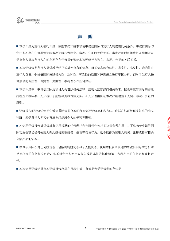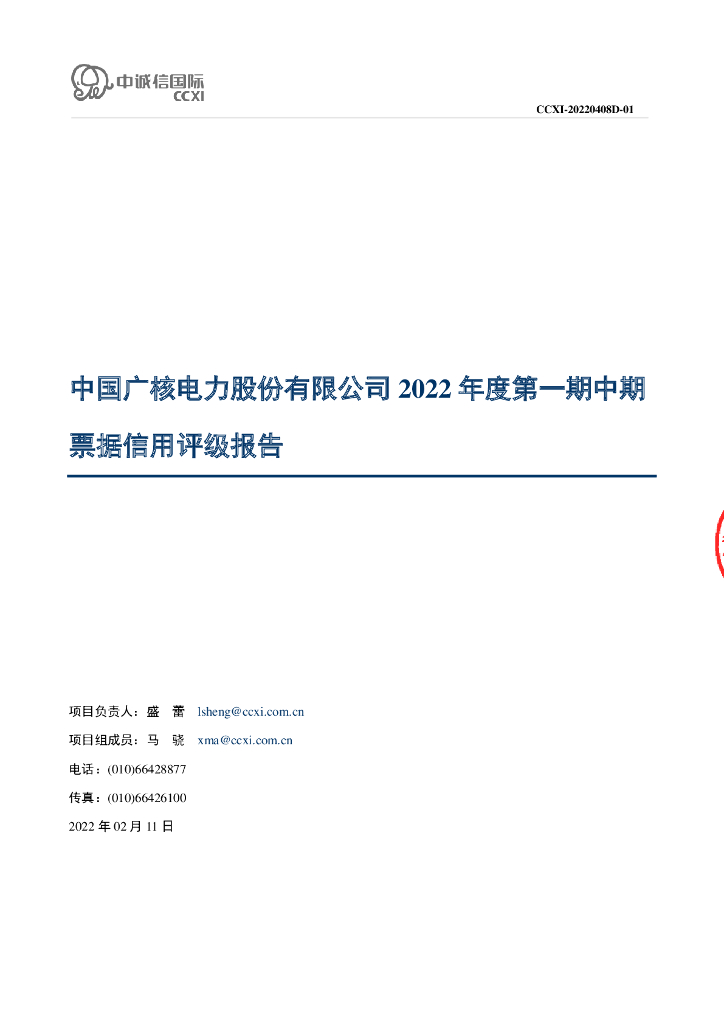 中诚信:中国广核电力股份有限公司2022年度第一期中期票据信用评级报告.pdf