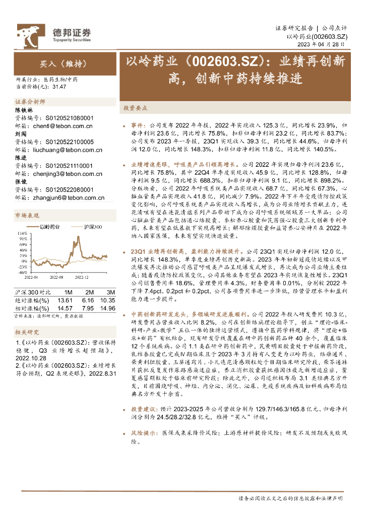 德邦证券:以岭药业(002603)-业绩再创新高,创新中药持续推进.pdf