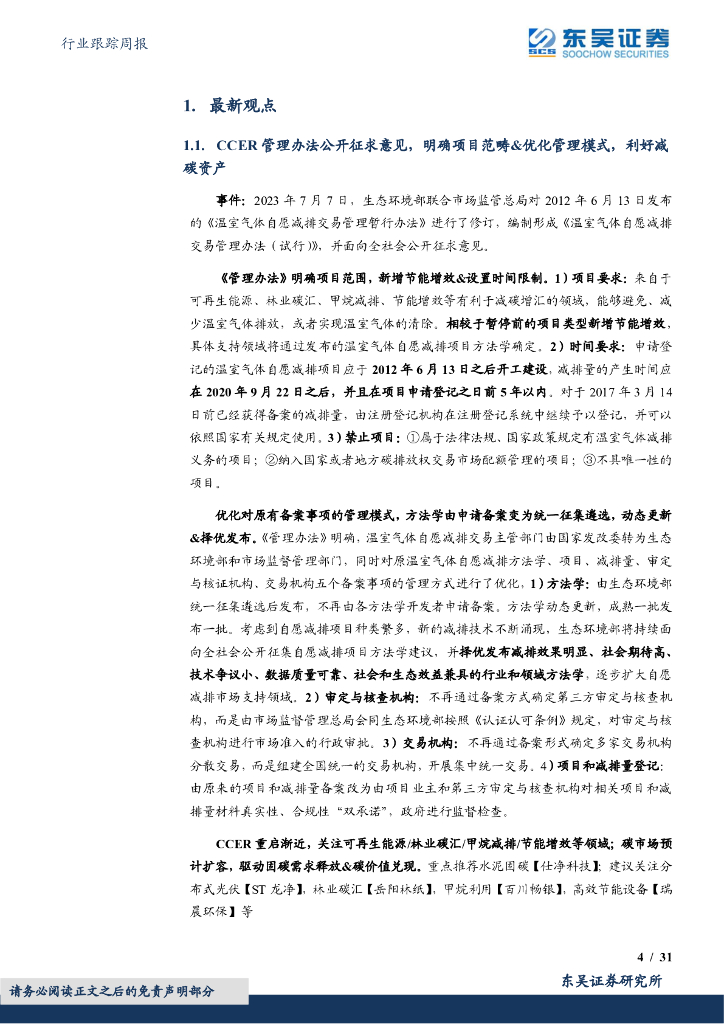 东吴证券:环保行业跟踪周报:CCER管理办法公开征求意见,明确项目范畴&强化供给侧约束,双碳环保资产受益.pdf