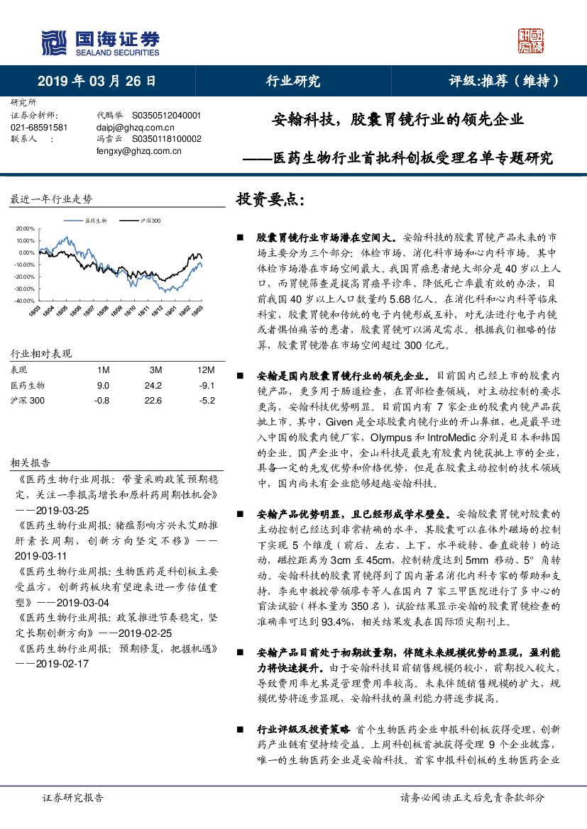 国海证券:医药生物行业首批科创板受理名单专题研究:安翰科技,胶囊胃镜行业的领先企业.pdf
