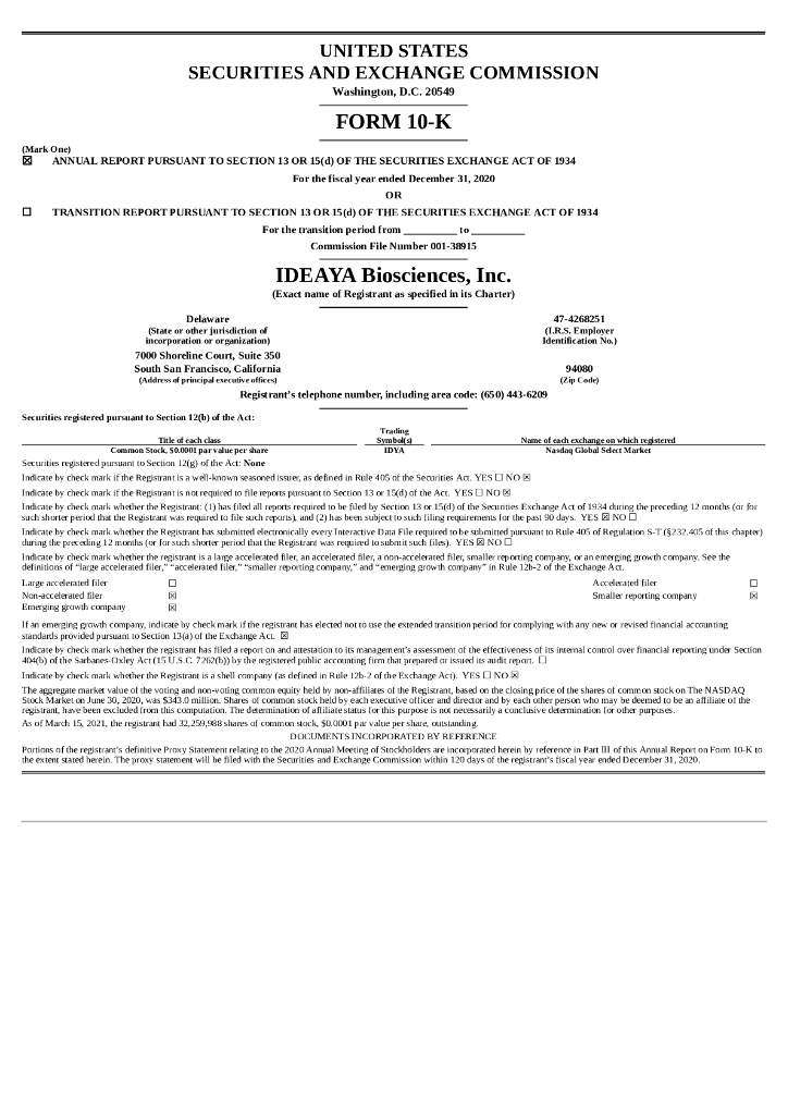 IDEAYA Biosciences, Inc.(IDYA)2020财年年度报告(英文版).pdf
