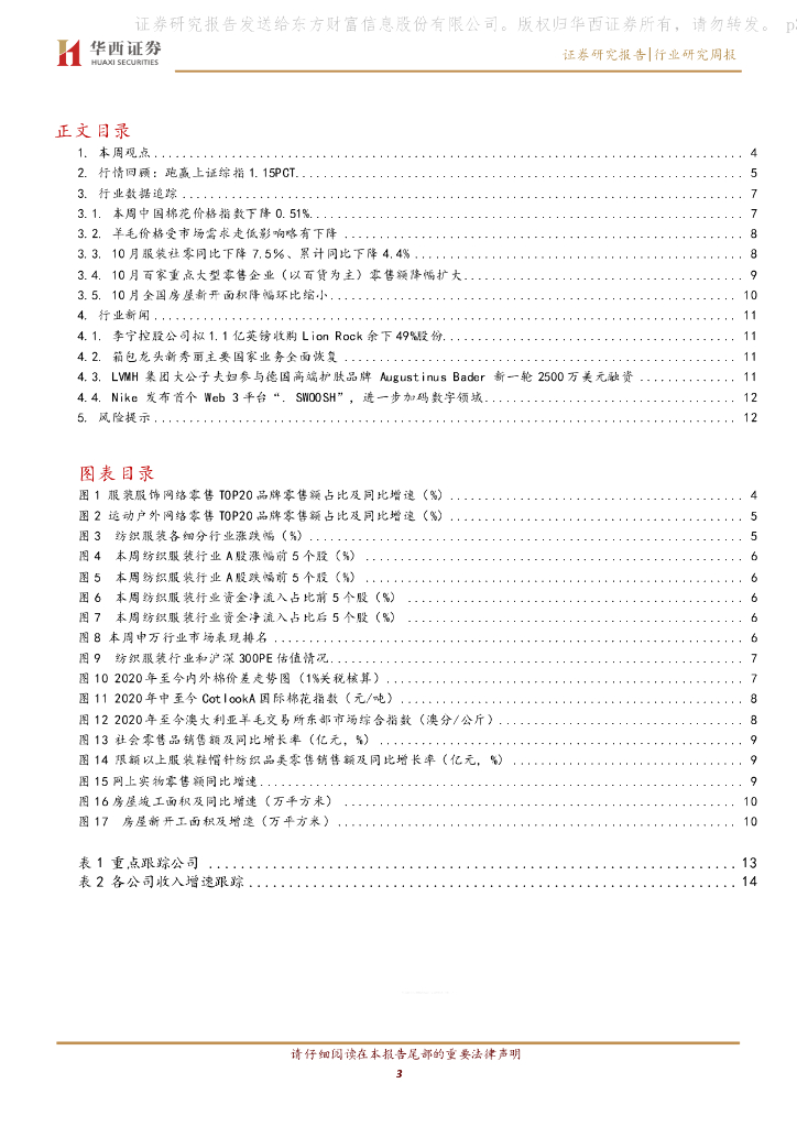 华西证券:纺织服装行业周报:户外双十一表现靓丽,10月服装社零下降7.5%.pdf