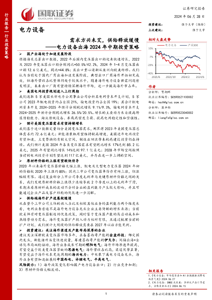 国联证券:电力设备出海2024年中期投资策略:需求方兴未艾,供给释放缓慢.pdf