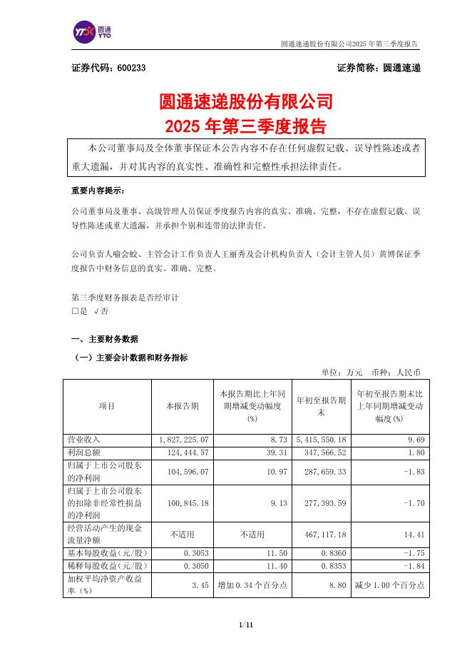 600233-圆通速递:圆通速递股份有限公司2025年第三季度报告.pdf