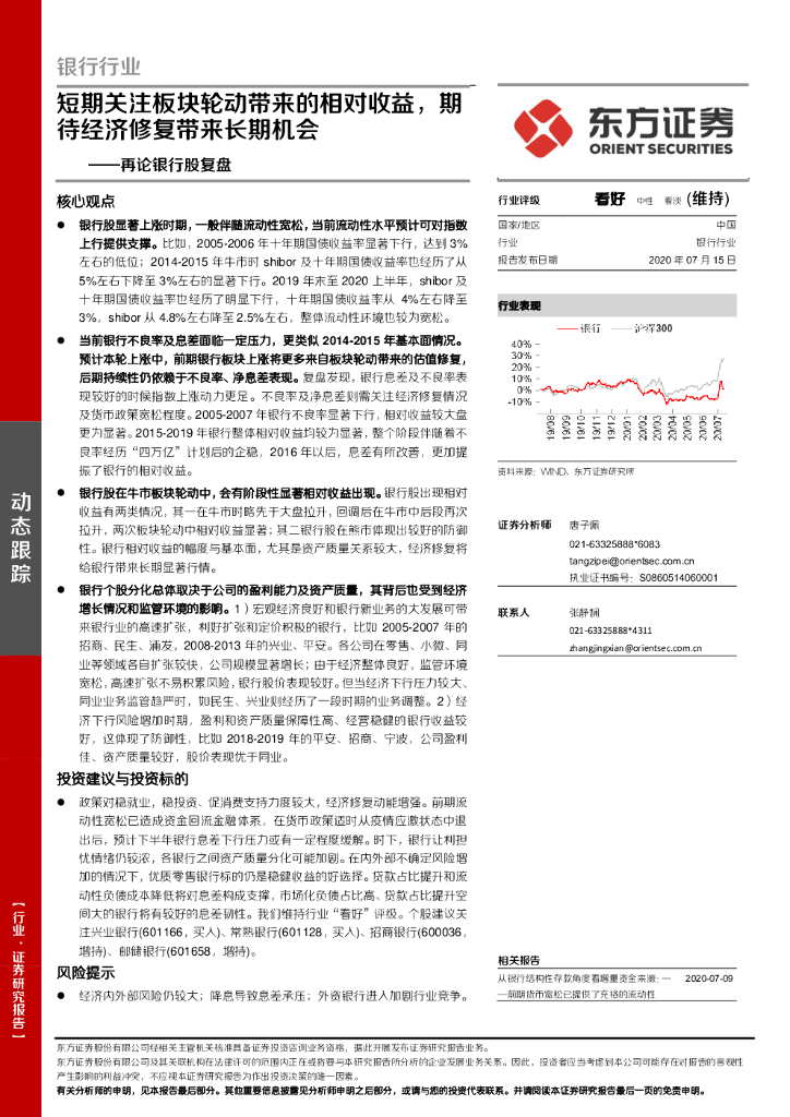 东方证券:再论银行股复盘:短期关注板块轮动带来的相对收益,期待经济修复带来长期机会.pdf