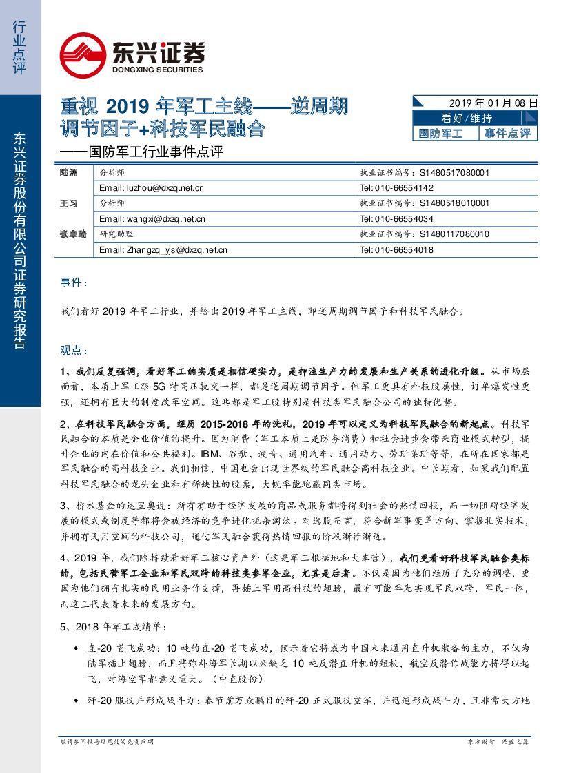 东兴证券:国防军工行业事件点评:重视2019年军工主线——逆周期调节因子+科技军民融合.pdf