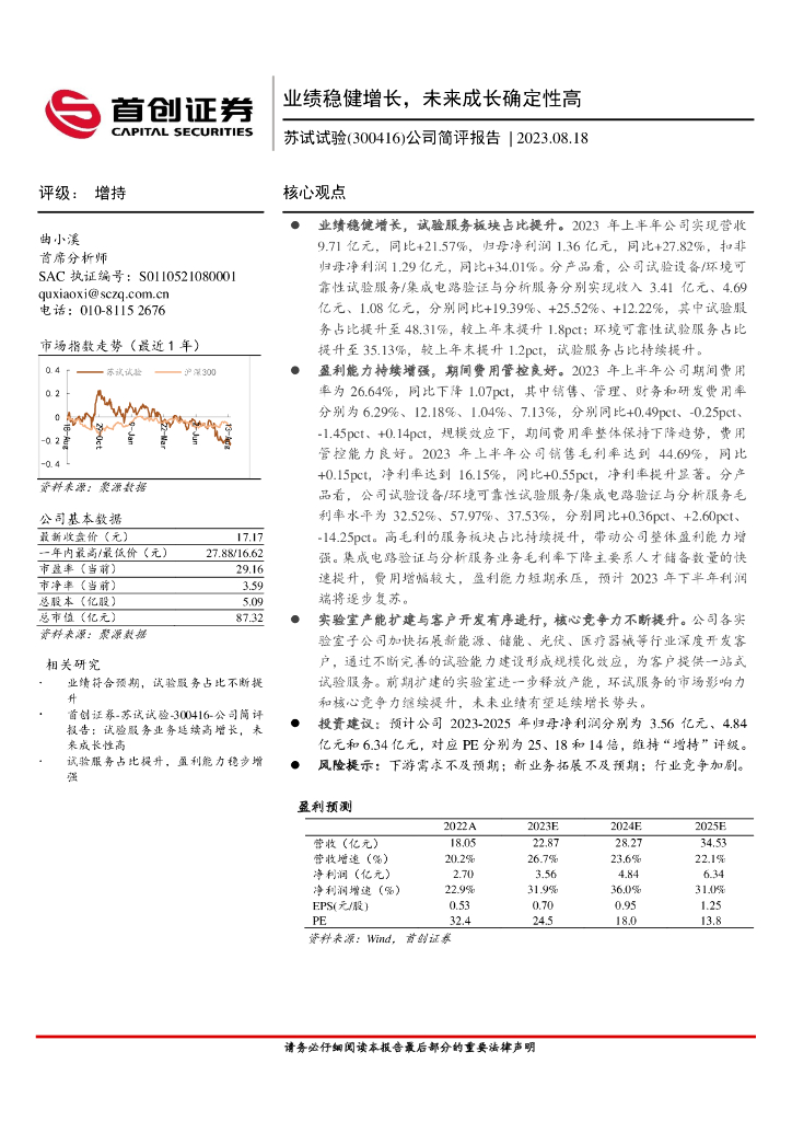 首创证券:苏试试验(300416)-公司简评报告:业绩稳健增长,未来成长确定性高.pdf