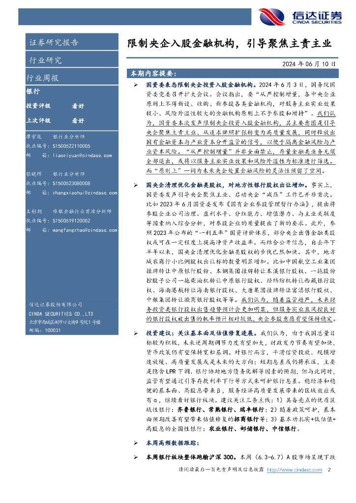 信达证券:限制央企入股金融机构,引导聚焦主责主业银行.pdf