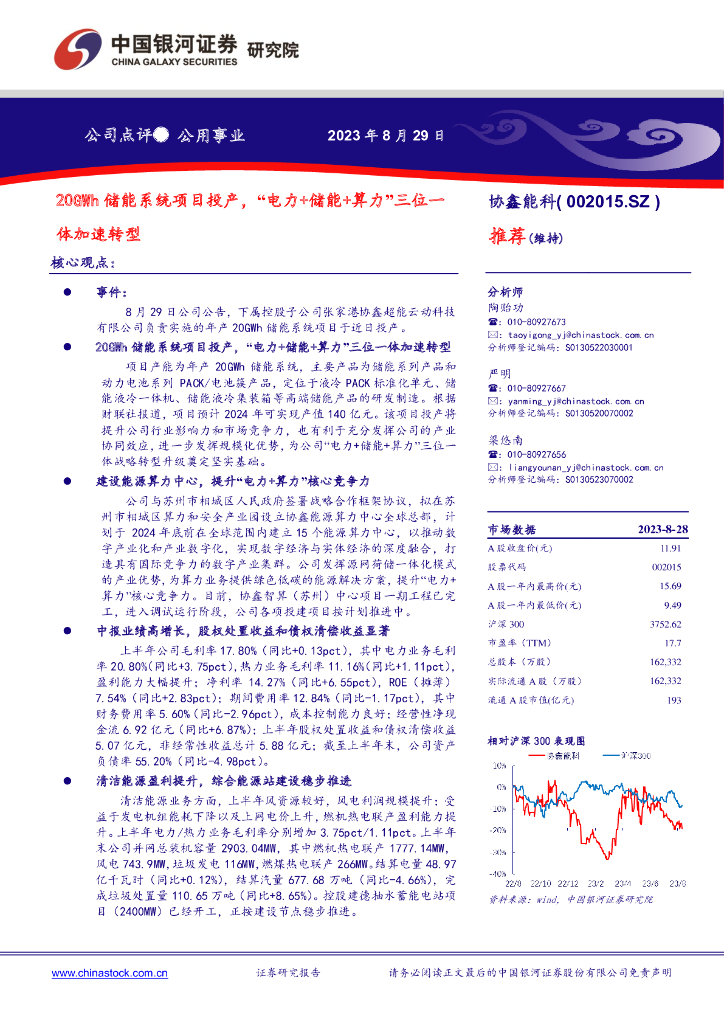 中国银河:协鑫能科(002015)-20GWh储能系统项目投产,“电力+储能+算力”三位一体加速转型.pdf