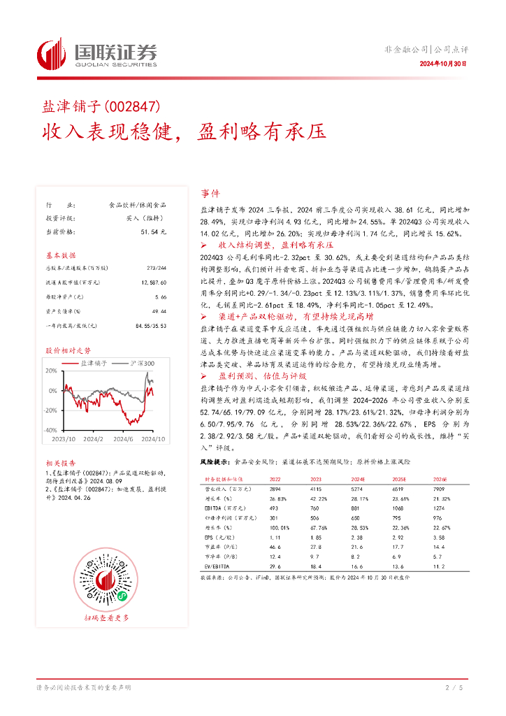 国联证券:盐津铺子(002847)-收入表现稳健,盈利略有承压.pdf