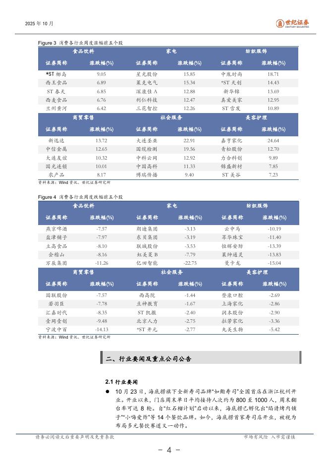 世纪证券:大消费行业周报(10月第4周):9月社零增速环比略有下降.pdf