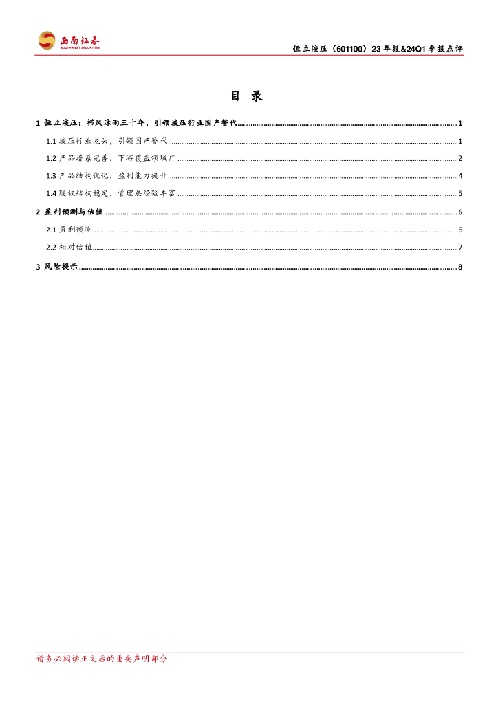 西南证券:恒立液压(601100)-多元化业务布局优势凸显,23年业绩稳健增长.pdf