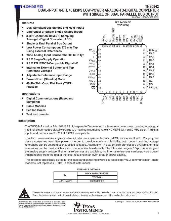 TEXAS INSTRUMENTS THS0842 数据手册.pdf