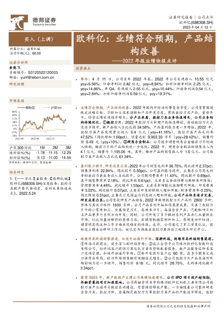 德邦证券:欧科亿(688308)-2022年报业绩快报点评:业绩符合预期,产品结构改善.pdf