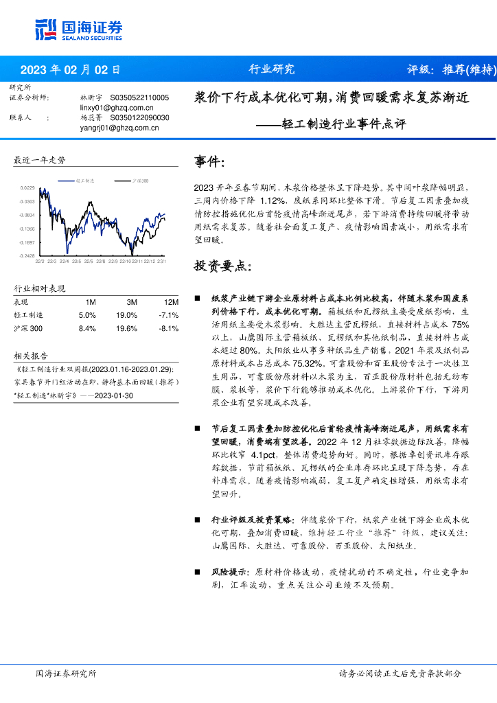 国海证券:轻工制造行业事件点评:浆价下行成本优化可期,消费回暖需求复苏渐近.pdf
