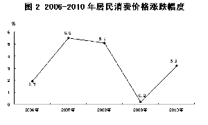 图2 2006-2010年居民消费价格涨跌幅度