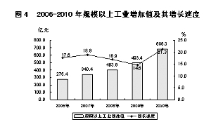 图4 2006-2010年规模以上工业增加值及其增长速度