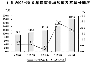 图5 2006-2010年建筑业增加值及其增长速度