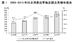 图7 2006-2010年社会消费品零售总额及增长速度