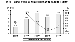 图9 2006-2010年实际利用外资额及其增长速度