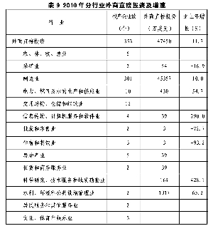 表9 2010年分行业外商直接投资及增速