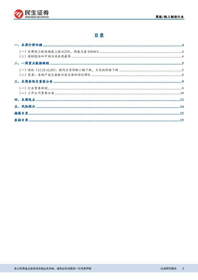 民生证券:轻工制造行业周报:1-11月份家具制造业营收同比增长10.3%,国内木浆价格继续下跌.pdf