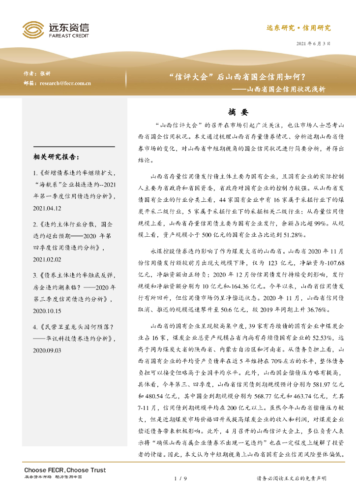 远东资信:“信评大会”后山西省国企信用如何? ——山西省国企信用状况浅析报告.pdf
