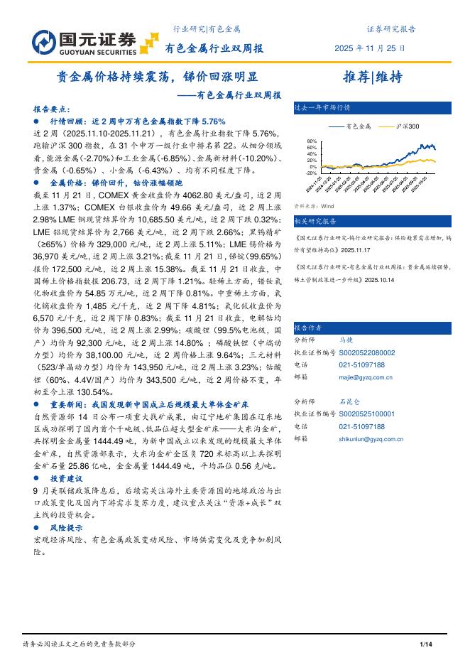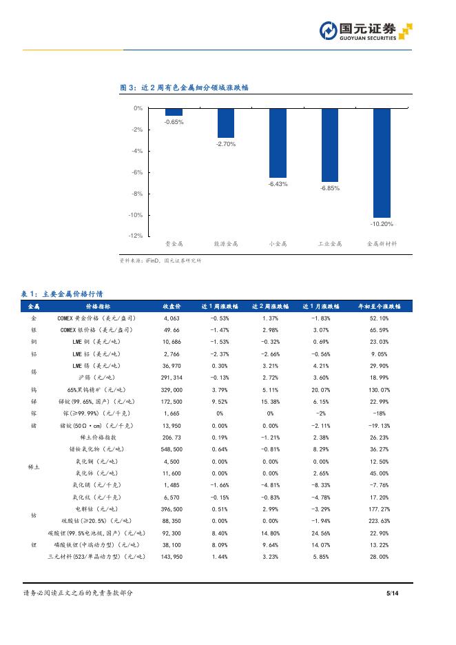 国元证券:有色金属行业双周报:贵金属价格持续震荡,锑价回涨明显.pdf
