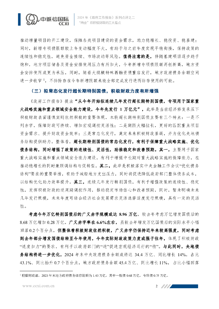 中诚信国际:2024年《政府工作报告》系列点评之二:“两会”后积极财政的三大关注.pdf