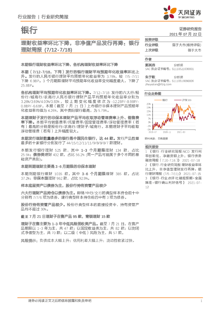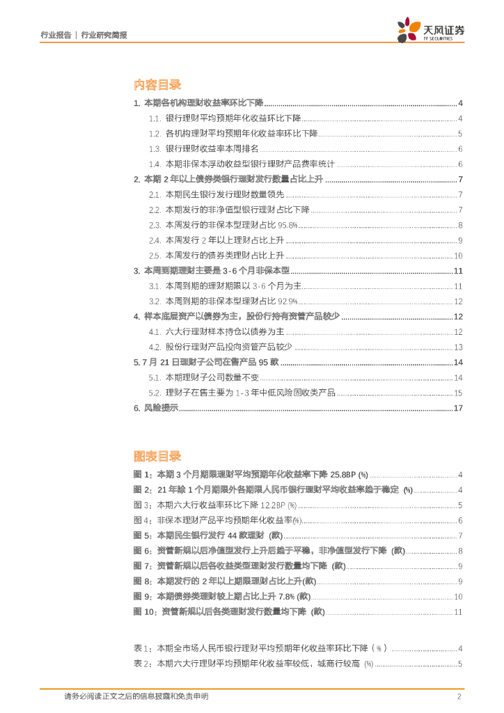 天风证券:银行理财周报:理财收益率环比下降,非净值产品发行再降.pdf