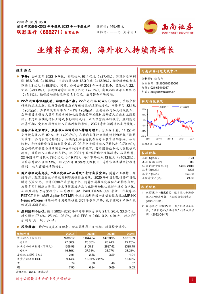 西南证券:联影医疗(688271)-业绩符合预期,海外收入持续高增长.pdf