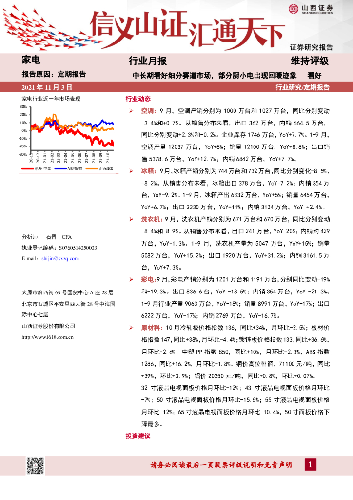 山西证券:家电行业月报:中长期看好细分赛道市场,部分厨小电出现回暖迹象.pdf