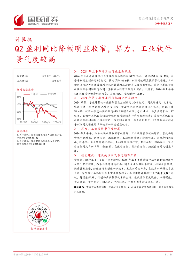 国联证券:计算机行业专题研究:Q2盈利同比降幅明显收窄,算力、工业软件景气度较高.pdf