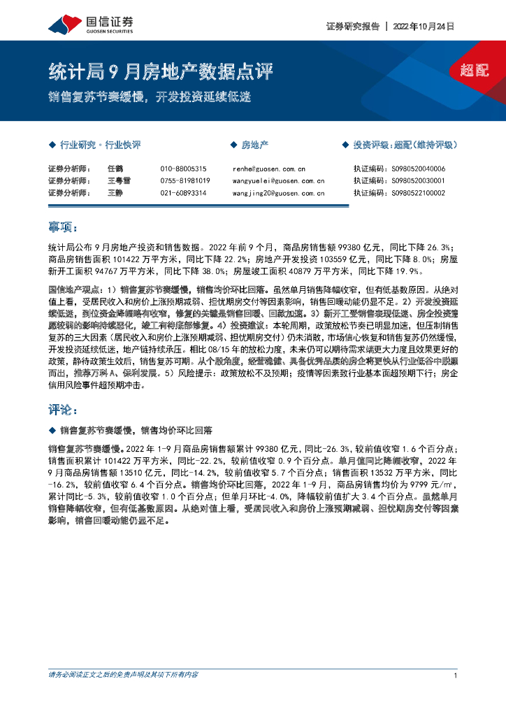 国信证券:统计局9月房地产数据点评:销售复苏节奏缓慢,开发投资延续低迷.pdf