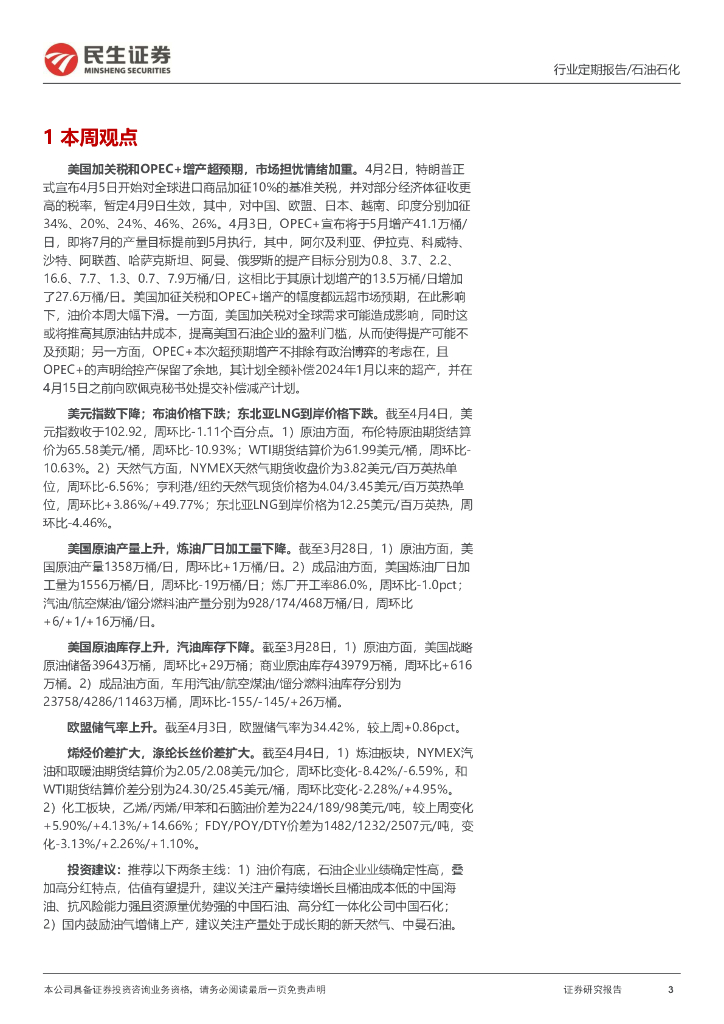 民生证券:石化周报:美国加关税和OPEC+增产超预期,市场担忧情绪加重.pdf