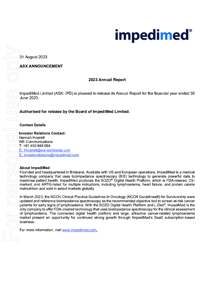 ImpediMed Limited(IPD)2023财年年度报告(英文版).pdf