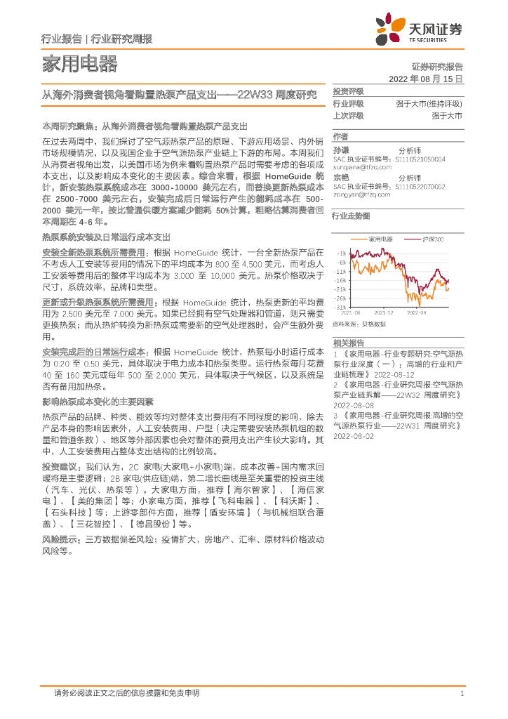 天风证券:家用电器22W33周度研究:从海外消费者视角看购置热泵产品支出.pdf
