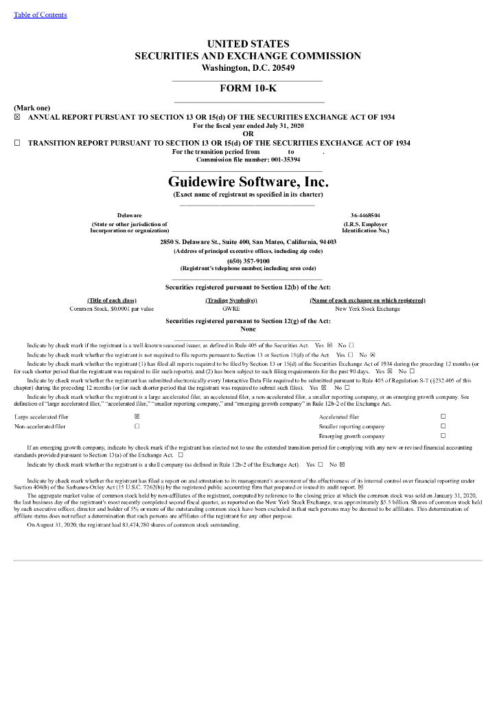 Guidewire Software Inc(GWRE)2020财年年度报告(英文版).pdf