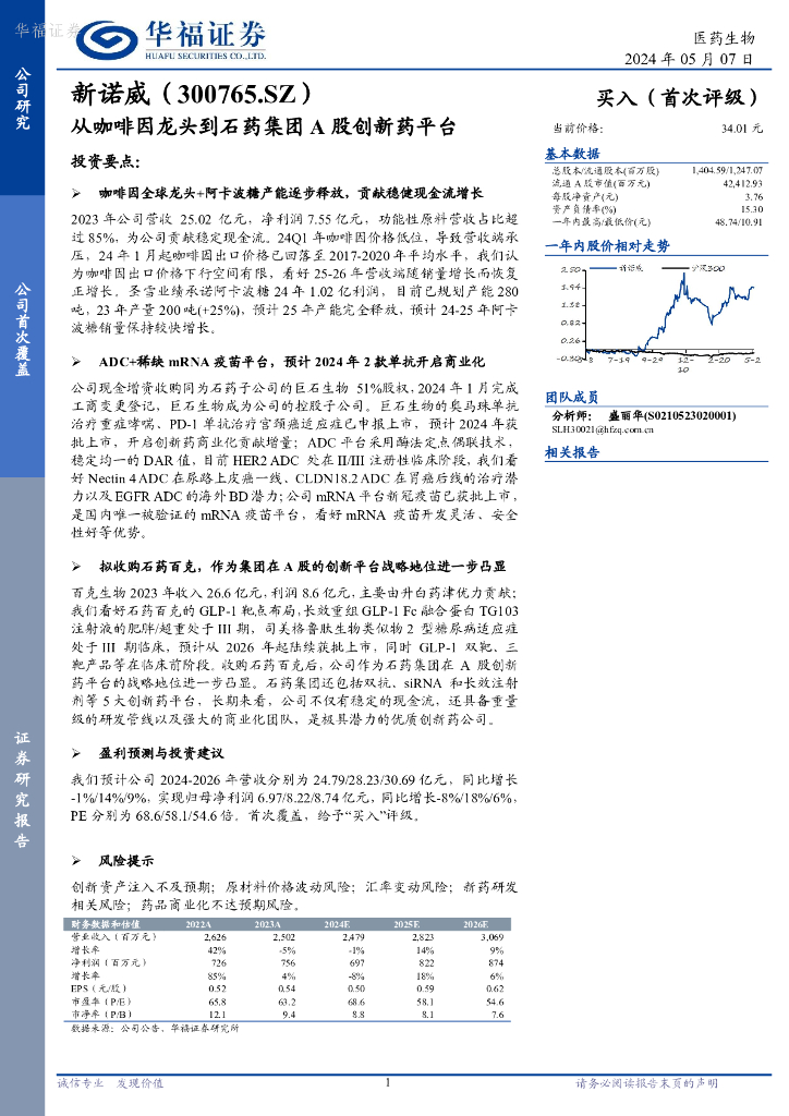 华福证券:新诺威(300765)-从咖啡因龙头到石药集团A股创新药平台.pdf
